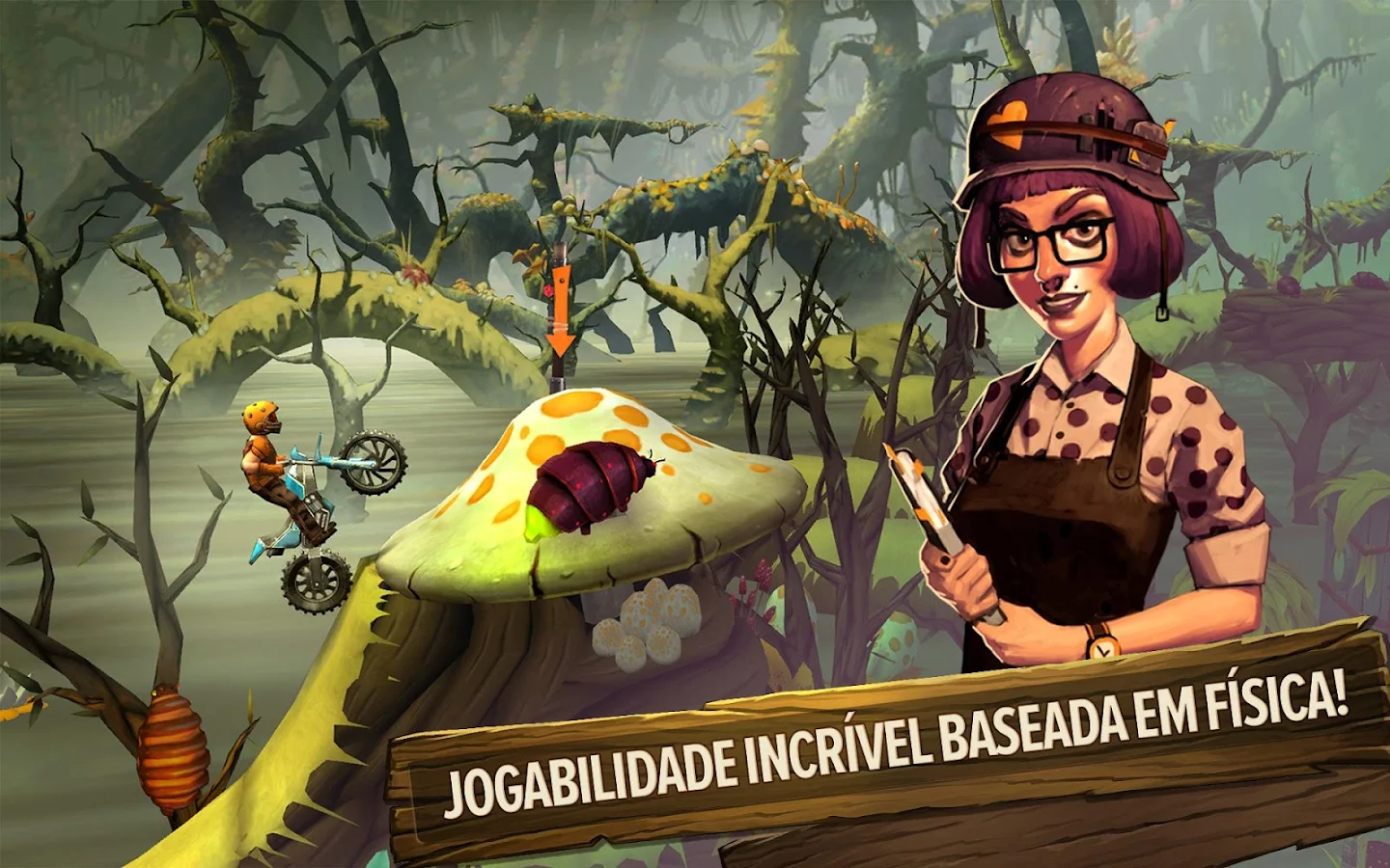 Explore um vasto mundo na sua moto. Enfrente seus amigos nos Placares de Líderes Globais. Domine as pistas baseadas em física e desafie os maiores pilotos do mundo em busca dos melhores tempos. Pilote sua moto por um mundo cheio de aventura, personagens malucos e pistas injustamente viciantes!